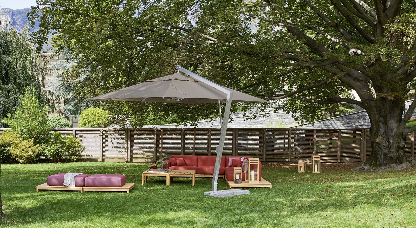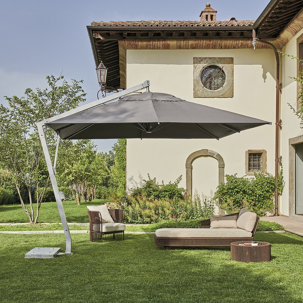 Elegant und Schlank bietet der Sonnensegel Copacabana ein passender Schutz von der Sonne. Die kraftvolle Struktur aus Aluminium und Stahl findet Halt über die beiden 65 Kg schwere Gewichte die den Fuß beschweren. Ideal für den Privat- oder HoReCa-Bereich begleitet der Sonnensegel Copacabana entspannte Momente im Garten, am Strand, am See oder am Pool-Rand.