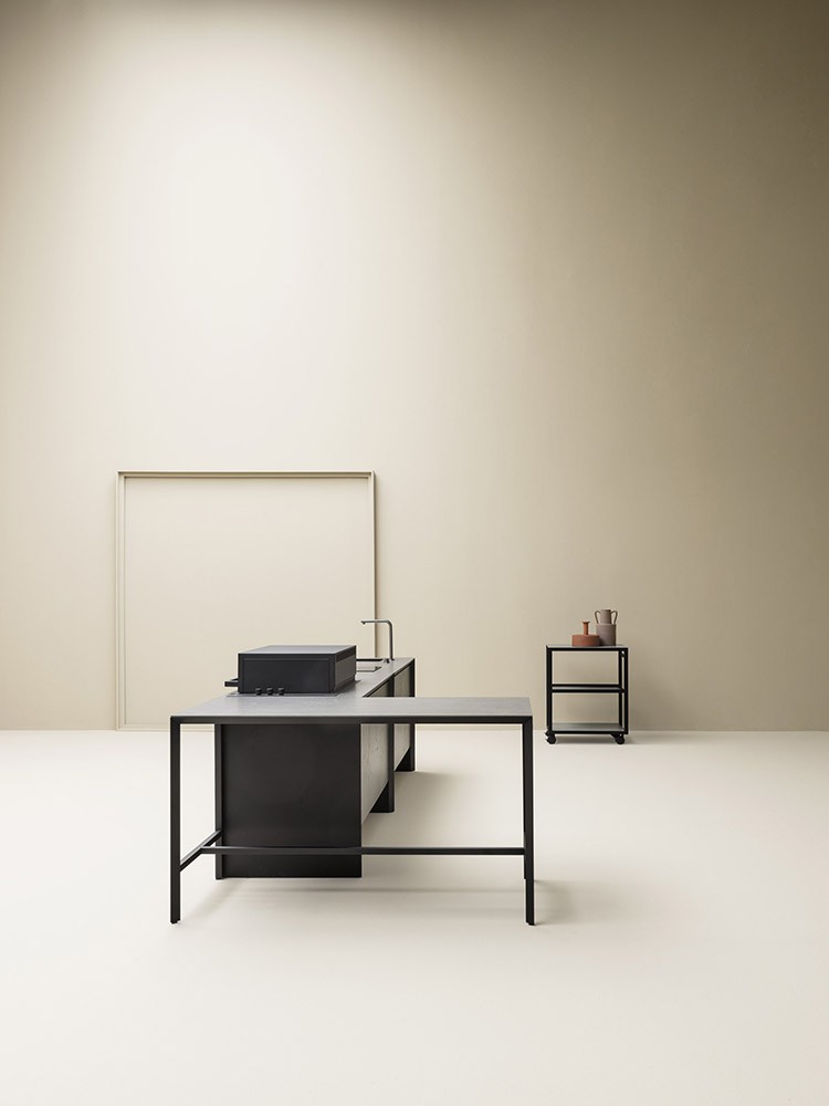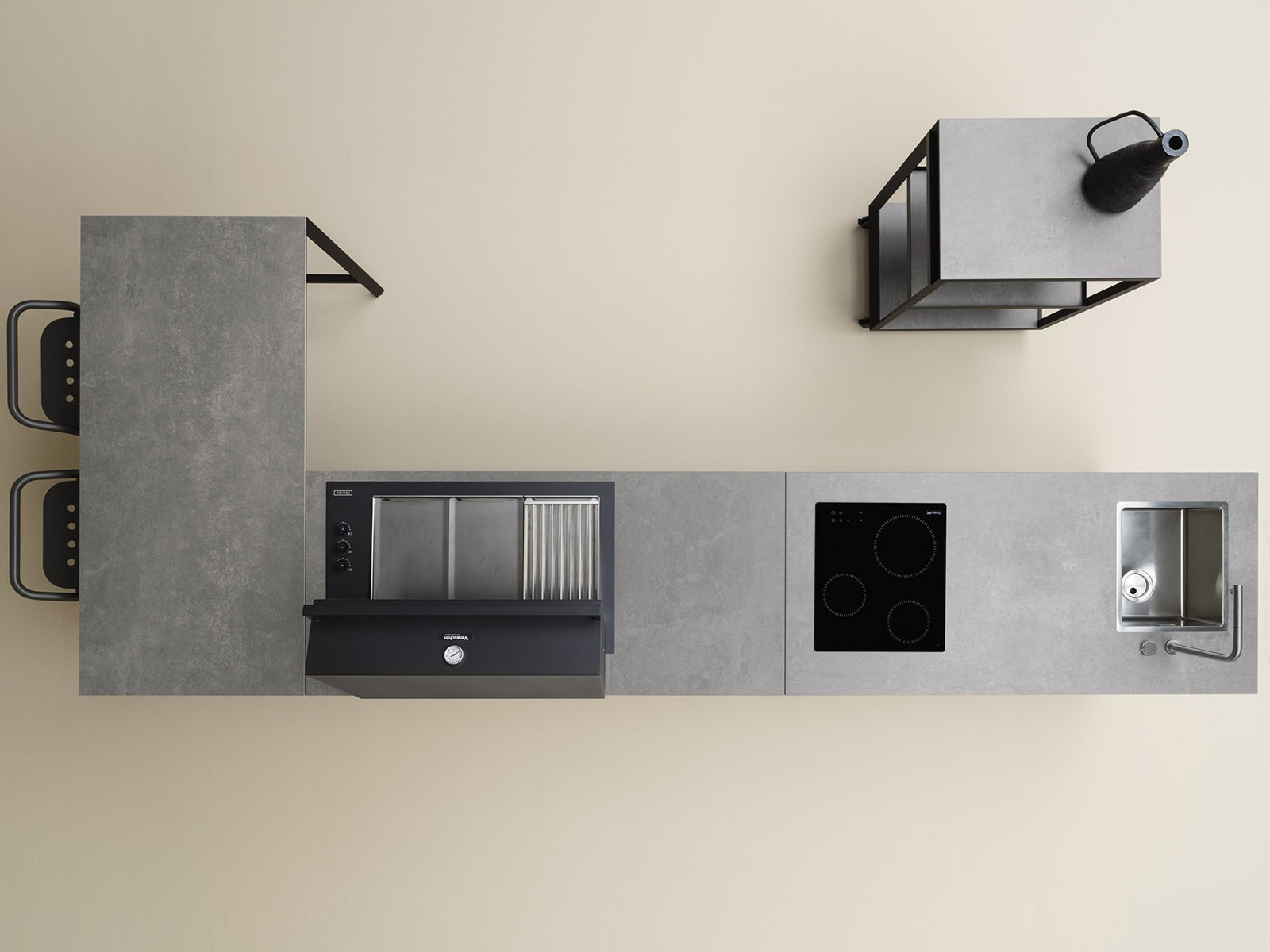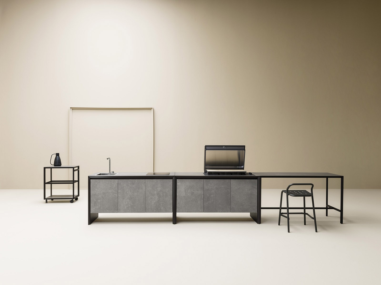 Die Wesentlichkeit von Linien und Formen, eingebettet in absoluten Minimalismus. Der Outdoor-Küchentisch, erhältlich in der Version mit oder ohne Räder, ist die perfekte Synthese der Designarbeit, die darauf ausgelegt ist, den Benutzern einzigartige Momente zu garantieren, ohne auf Funktionalität und Komfort zu verzichten. Dieser Tisch zeichnet sich durch die Struktur aus schwarzem Aluminium und eine Keramik-Tischplatte aus, Elemente, die ihn außerordentlich langlebig machen, und ist so konzipiert, dass er Sie von der Zubereitung der Gerichte bis zum Moment der Mahlzeit begleitet.